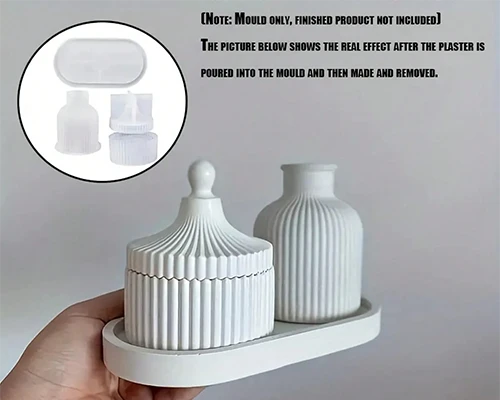 3 قطع قوالب دائرية مخططة DIY لصناعة قارورات للشموع ذات شكل برج مغولي، صندوق تخزين المجوهرات بغطاء، قاعدة بيضاوية، صينية، وسادة من السيليكون، قالب خرساني جبسي، قالب راتنجي اكبوكسي للزينة المنزلية والمكتبية