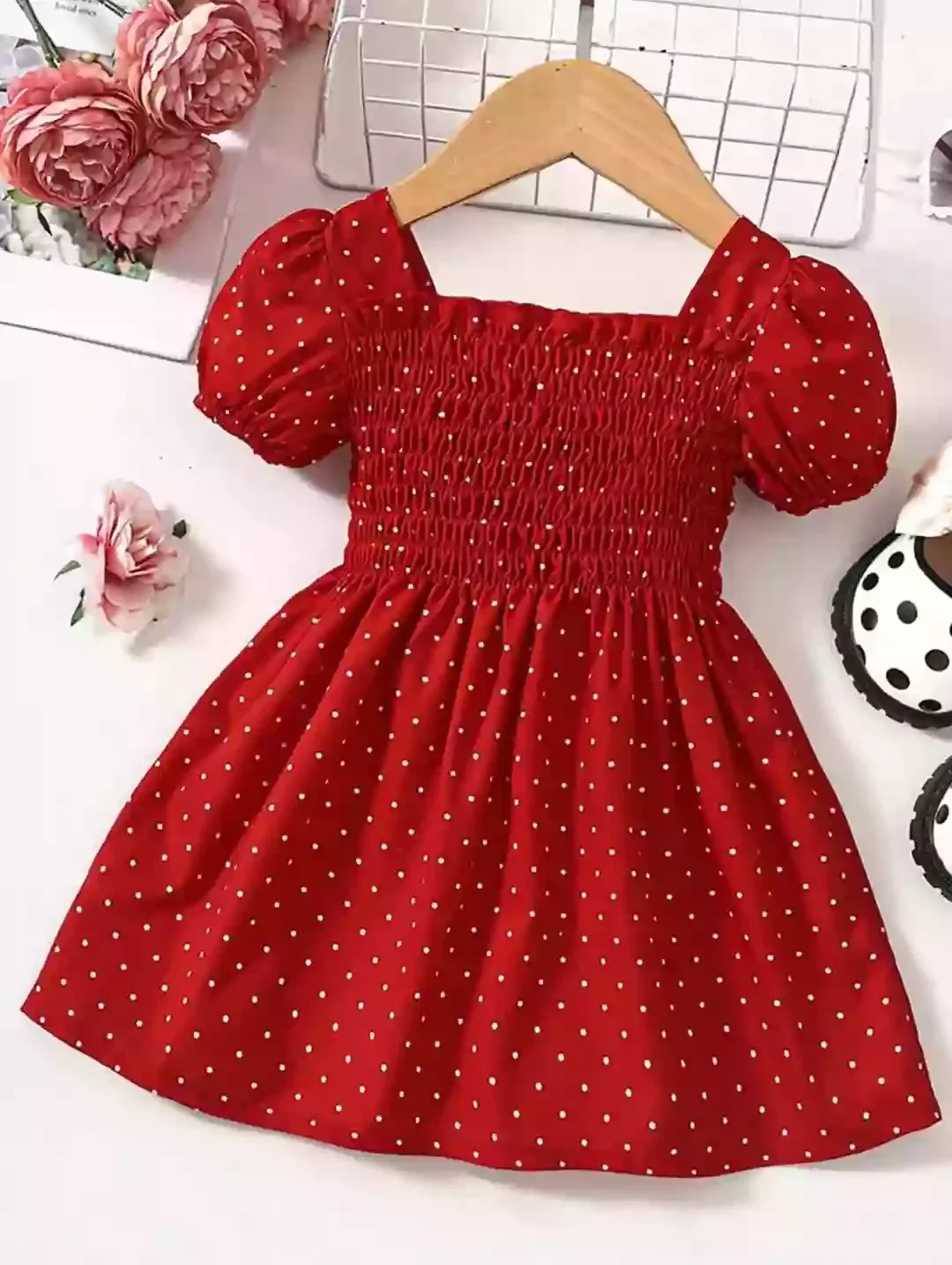 👗 فستان أطفال أنيق باللون الأحمر المنقط أضفي لمسة من الجمال والرقة على إطلالة طفلتك مع هذا الفستان الساحر! ✨ تصميم مكشكش مع قبة مربعة تمنح مظهرًا عصريًا وجذابًا. ✨ أكمام منتفخة تضيف لمسة كلاسيكية مميزة. ✨ قماش مريح وخفيف مثالي للمناسبات والنزهات. ✨ لون أحمر نابض بالحياة مع نقاط بيضاء تمنح مظهرًا مرحًا وطفوليًا. 💖 مثالي للحفلات، المناسبات الخاصة، أو الخروج اليومي بأناقة. |