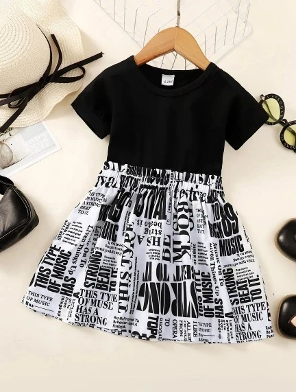 فستان بناتي صغير بأكمام قصيرة وقصة على شكل حرف A، فساتين يومية صيفية جميلة