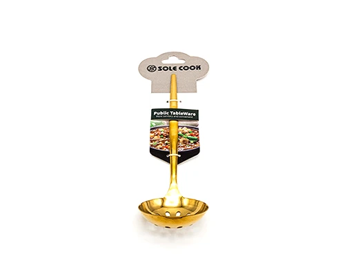 مغرفة تقديم ذهبية مثقبة أضف لمسة من الرقي إلى مطبخك مع مغرفة التقديم الذهبية المثقبة المصممة بعناية لأداء عملي ومظهر أنيق. تتيح الفتحات الدقيقة تصفية فعّالة للسوائل دون التأثير على شكل أو جودة الطعام، بينما يمنحك المقبض الذهبي الطويل راحة وثباتًا أثناء الاستخدام. مثالية للمناسبات، العزائم، أو الاستخدام اليومي لكل من يهتم بالتفاصيل. المميزات: تصميم فاخر بلون ذهبي لامع رأس مثقّب لتصفية مثالية مقبض مريح طويل يسهل التحكم مصنوعة من خامات مقاومة للصدأ وسهلة التنظيف |