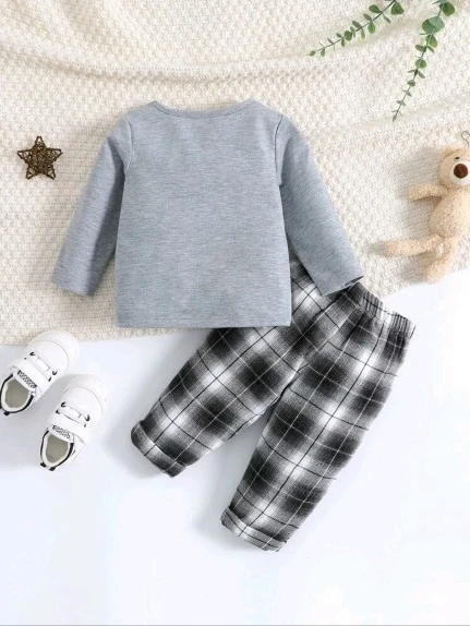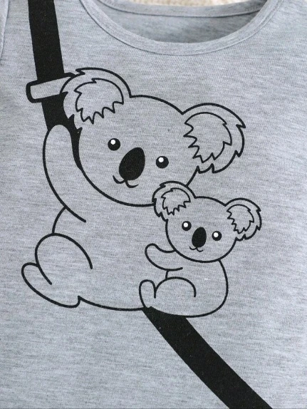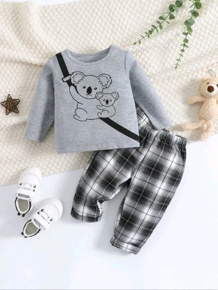 مجموعة تي شيرت طفل رضيع مطبوعة برسم الكوالا وبنطلون مربعات عشوائية للأولاد