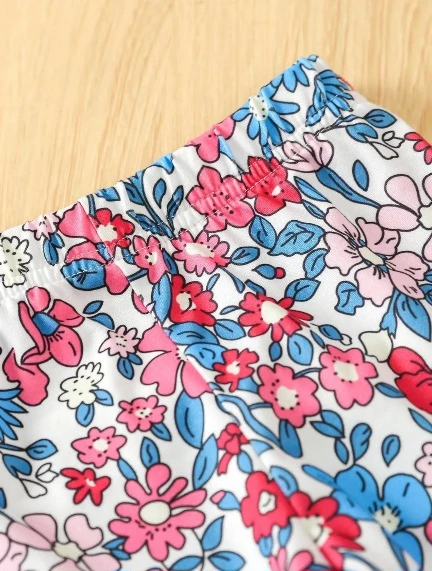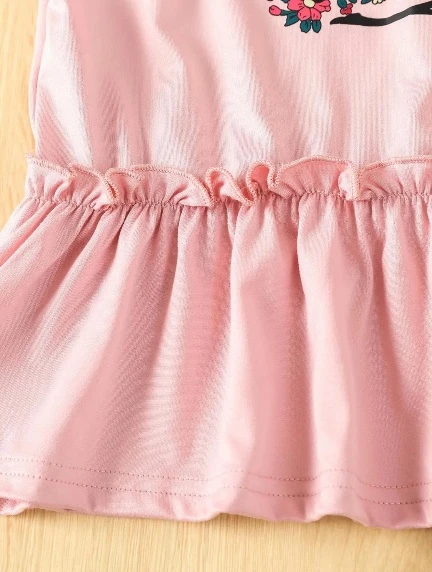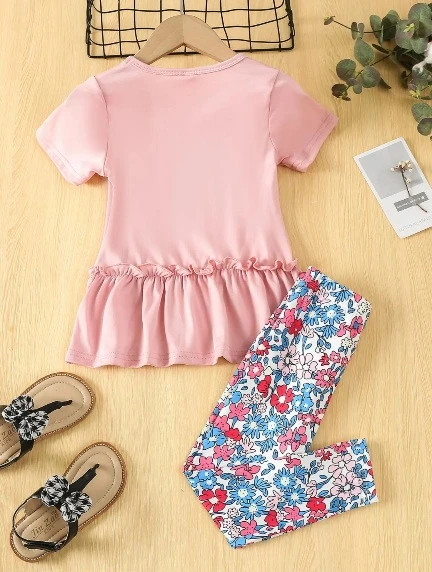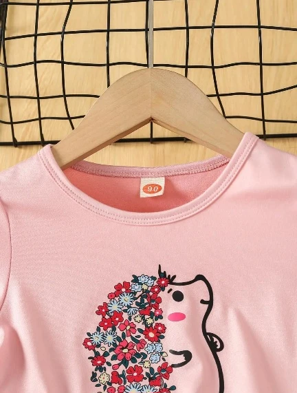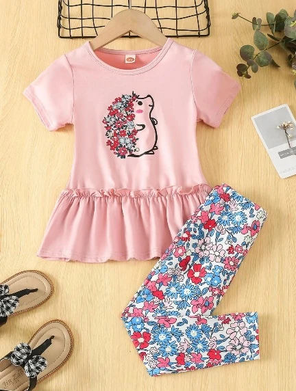 طقم مكون من قطعتين من تي شيرت وبنطال ضيق بطبعة قنفذ كرتوني لفتاة صغيرة