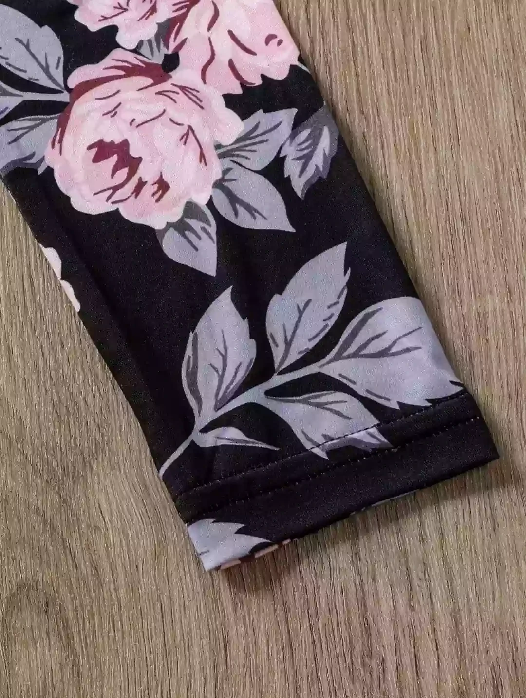 طماق مع تي شيرت بجرافيك زهر وعبارة للبنات الصغار