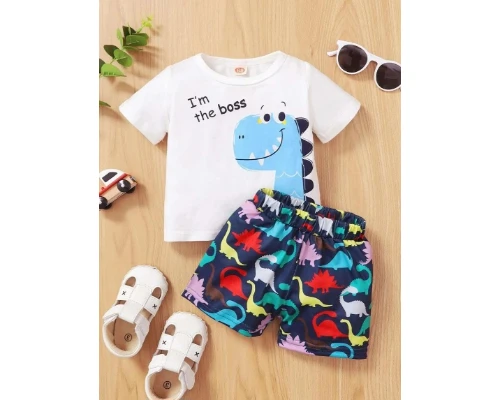 تيشيرت وشورت بطبعة ديناصور كرتونية للاولاد